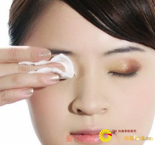 滴一点卸妆液到化妆棉上,然后闭上双眼,依眼皮的肌理,由眼头向眼尾方向慢慢抹去,抹下眼线位置时双眼向上望,尽量避免过度拉眼部肌肤产生细纹