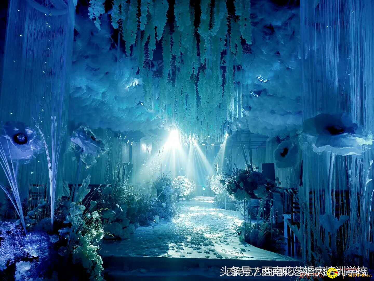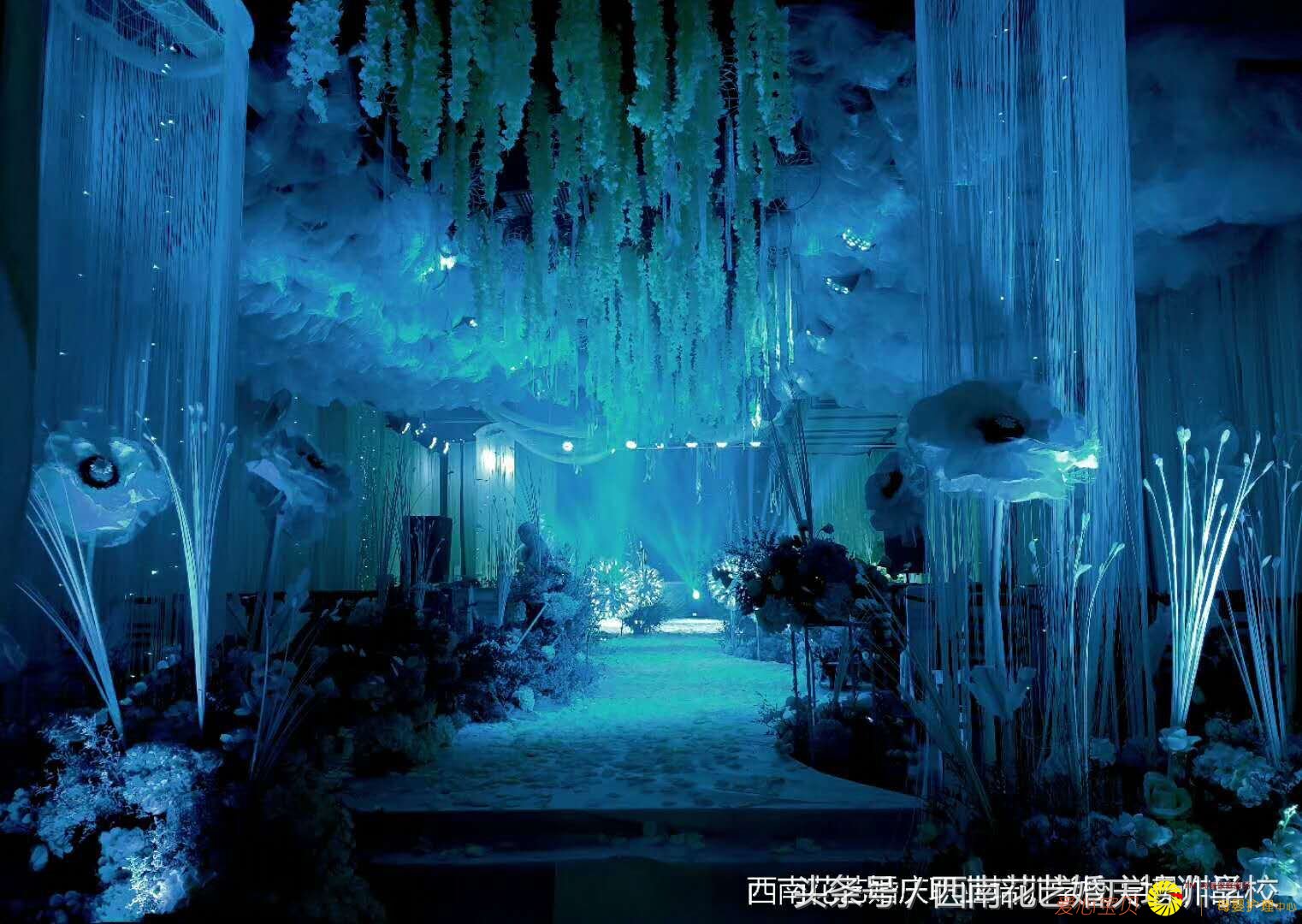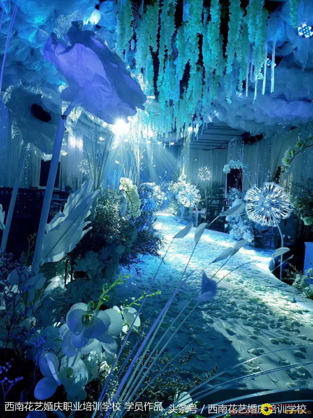 婚庆班学员设计与制作的婚礼现场布置作品赏析。婚礼主题《火树银花》冰雪宁静的世界,剔透瑰丽的瞬间,一朵银花凝聚的思念,融化成恬静的永恒!