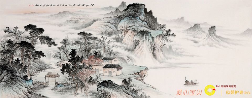峡江烟云,场景辽阔,恢弘大气,意境飘渺悠远。品读李佩锦老师的山水画,仿佛置身于人间仙境一般,她以意造境,以心绘画,像诗一般地抒情呤唱,房屋、雾气、树木、湖水、峡江、山居者与帆船,有着极强的参与性,充分体现了画家对山水的依恋,具有鲜明的时代风范。