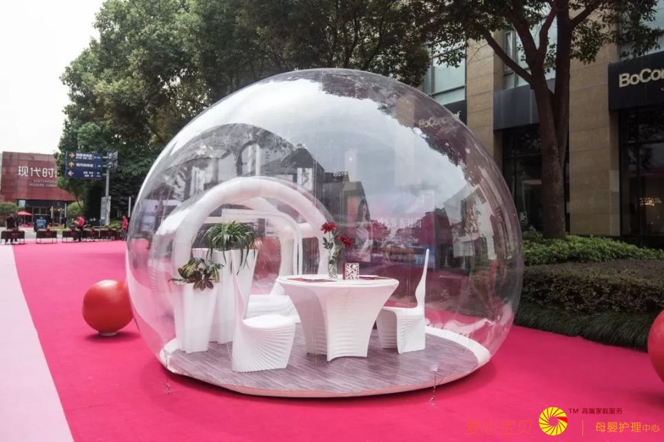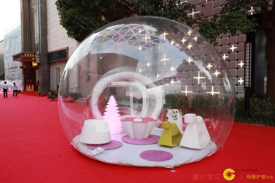 B区的彩练舞道上安置着不同家装主题的泡泡屋。