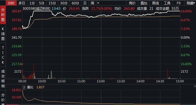 wind数据显示,5月8日开盘不久诚迈科技涨停,打开涨停板后,于尾盘再度涨停。截至收盘,诚迈科技涨10.00%,报265.87元。(中新经纬APP)