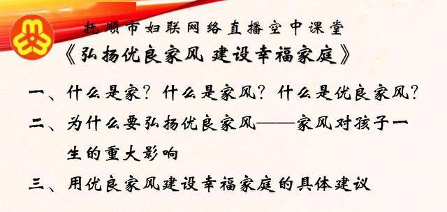 在“5.15”第27个国际家庭日到来之际,市妇联创新家教载体,扩大家教受益面,携手顺城区妇联、百航职业培训学校联合开设家庭教育网络直播空中课堂。当晚7点,市妇联家庭教育讲师团专家闫翠霞老师以《弘扬优良家风 建设幸福家庭》为主题,直播授课,与全市家长线上交流科学的家庭教育理念和方法。