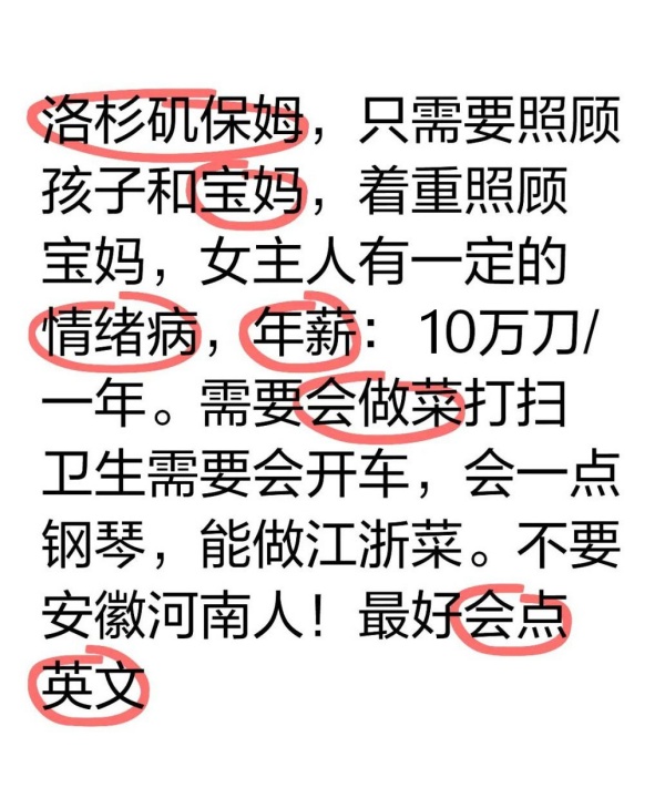 诚招洛杉矶家庭保姆,年薪10万,要求多 Sincerely recruiting Los Angeles family nanny, annual salary of $100,000, more r