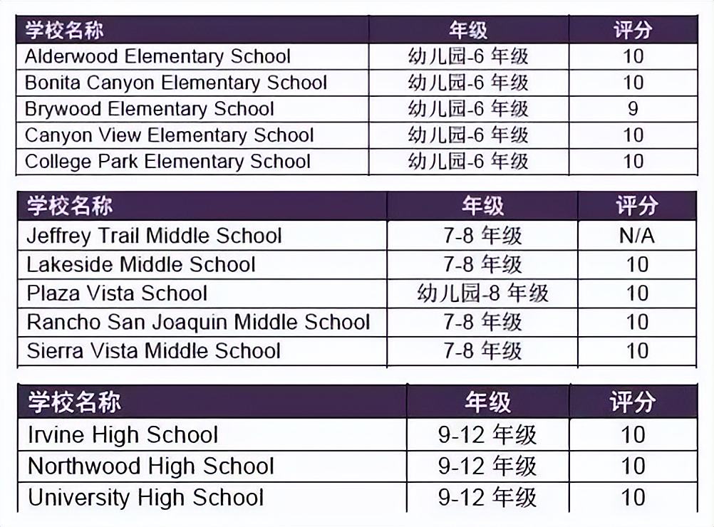 2、优质的教育资源尔湾联合学区在美国教育系统排名中长期处于顶尖水平。一个城市的学区从小学到高中,评分基本都在9-10分。名校聚集,有13所全美蓝丝带学校。