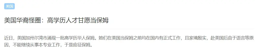 一、高学历也去硅谷当保姆!太赚钱了。1. Even with a high level of education, you can still work as a nanny in Silicon Valley! It's so lucrative!