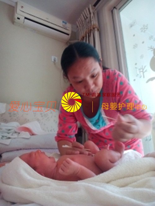 北京爱心宝贝付秀琼阿姨正在给宝宝脐带护理
