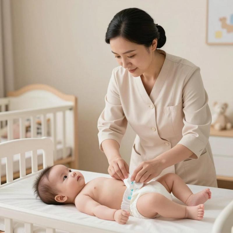 仪容仪表:穿着整洁得体(如素色衬衫+长裤),不化浓妆、不喷香水、不戴夸张首饰,指甲修剪圆润干净,避免任何可能划伤宝宝的隐患。