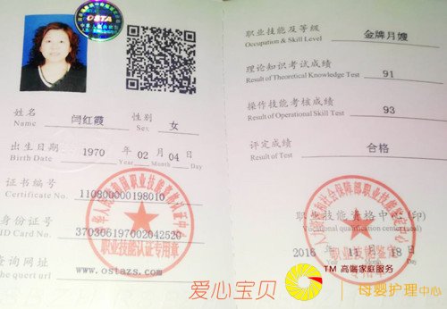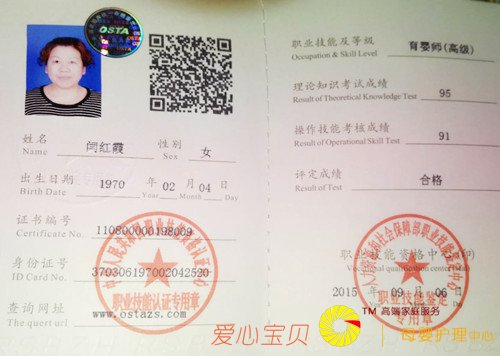 北京爱心宝贝家政公司涉外月嫂闫红霞近照