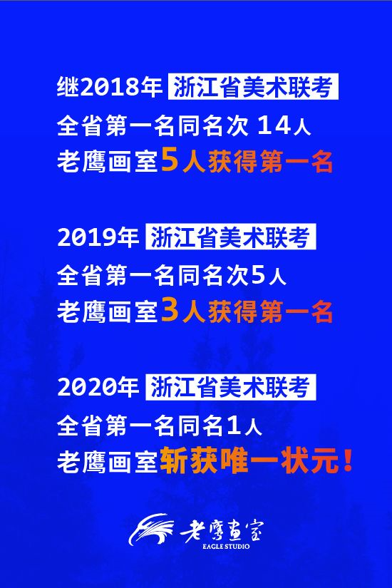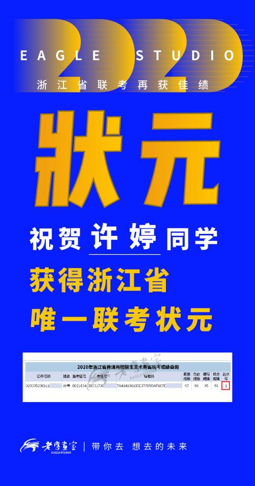 继2019年浙江美术联考全省第一名同名次5人,杭州老鹰画室独揽3个名额后,老鹰画室今年依然不负众望,斩获2020浙江联考唯一一名状元,此次无人与之同名次,含金量可想而知。截止目前数据统计,此次联考总分在85分以上人数近千人,而在单科中取得95分以上高分人数近八百余人,所有学员成绩仍在不停统计中,数据量也在不断上升,就当前数据足以惊艳众人,后续制霸各成绩榜,也是毋庸置疑的事实。