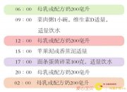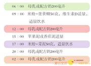 母乳及其他主食喂养次数与9个月时相同,只是在下午6点喂奶前可增加饼干、母乳或配方奶、米粥等,这样做的目的是为再次减少喂奶次数做好准备,比如将喂奶次数减为每日3次。...