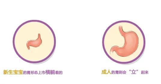 新生儿的胃部,从正面看是横躺着的,呈不稳定状态,同时贲门部位(胃部入口)还比较松。也就是说,大人吃饭时,当食物进入胃部后,贲门会通过收缩来防止食物逆流回食道;但由于婴儿的胃贲门部位还不能很好地进行收缩,从而导致进入胃部的奶汁等能比较容易地流回食道。