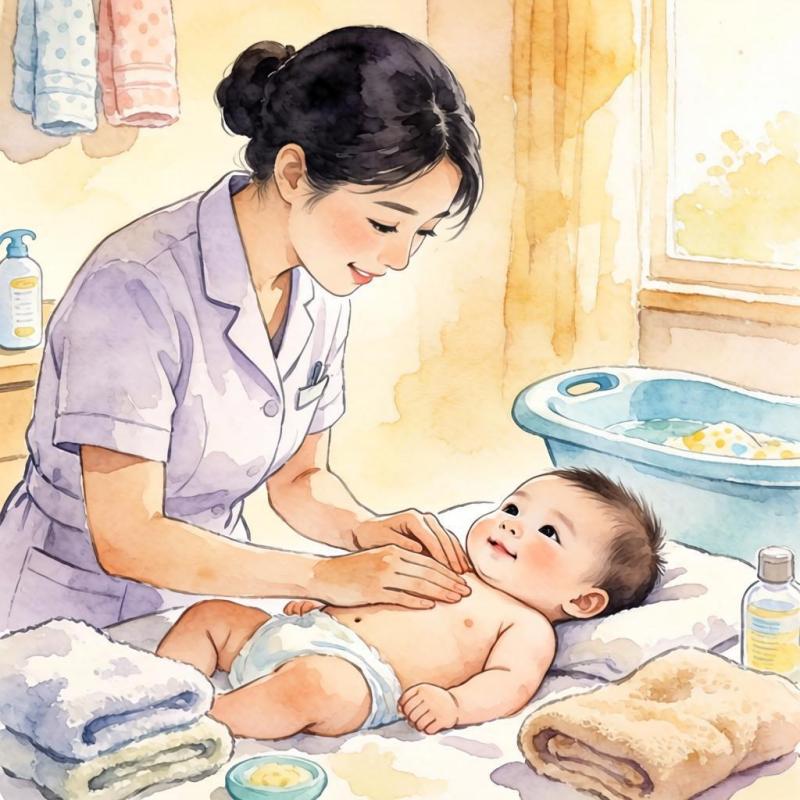 新生儿专业护理:新生儿抚触、测体温、大小便观察、脐带护理。