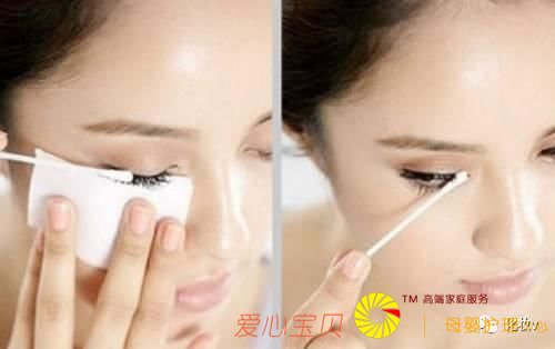 将纸巾对折放在下眼睑,合上眼,再用沾了卸妆液的棉花棒逐下由睫毛根部向下抹去。然后睁开眼睛,将纸巾放在眼睫毛底部,用棉花棒逐下由睫毛根部向下抹。