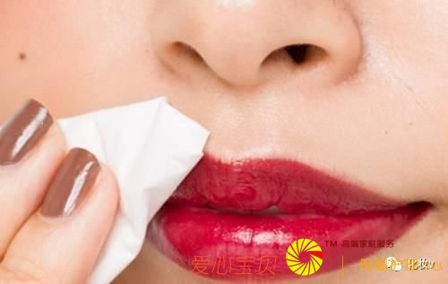 用纸巾擦掉唇部妆容,再用唇部专用卸妆液轻轻涂抹双唇,卸除唇妆。