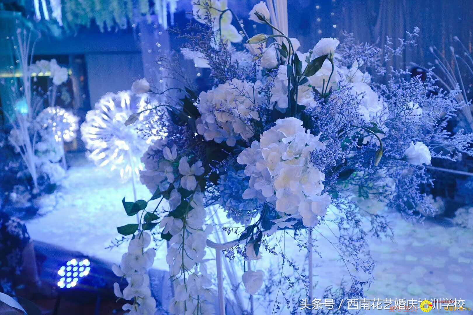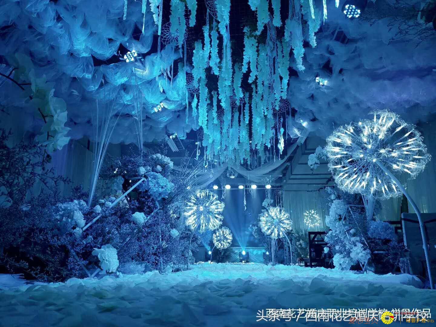 婚庆班学员设计与制作的婚礼现场布置作品赏析。婚礼主题《火树银花》冰雪宁静的世界,剔透瑰丽的瞬间,一朵银花凝聚的思念,融化成恬静的永恒!