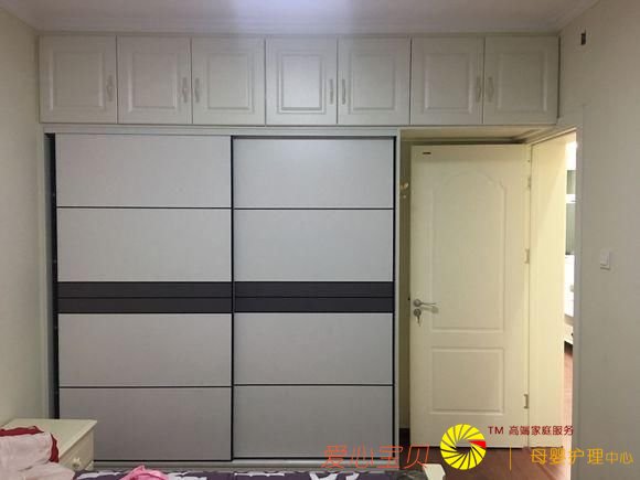 卧室里的衣柜做的比较大,为了方便以后的衣物存放,顶部也打了一排横柜。