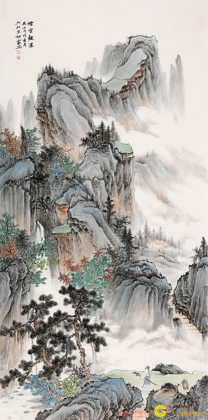 【新品】李佩锦仿古山水四尺竖幅《烟云观瀑》