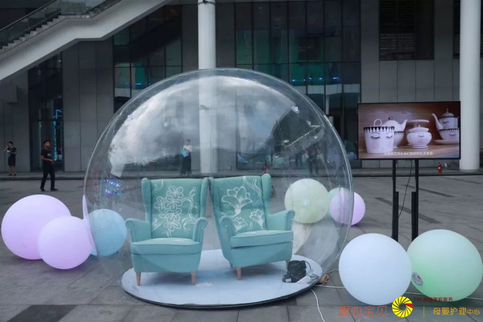 B区的彩练舞道上安置着不同家装主题的泡泡屋。