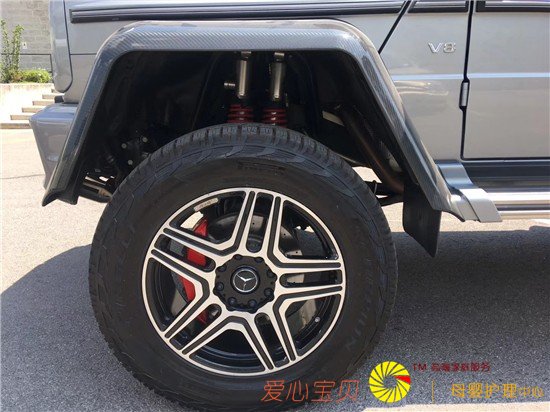 18款奔驰G500 4x4搭载4.0LV8发动机,机械增压器的装备使得它在近1800rpm时就能爆发出80%的最大扭矩,具有216kw/5500rpm的最大功率和456nm/2800-4000rpm的最大扭矩。底盘有好几道加强梁进行加固,前后整体桥式悬挂系统粗壮无比,绝对是最强壮的民用车之一。