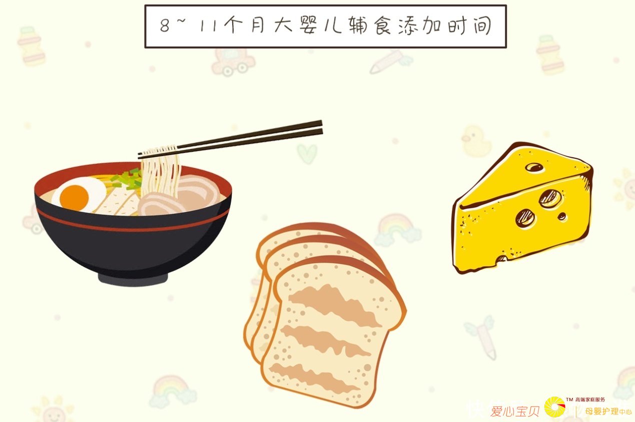 那么到了8-11个月的婴幼儿,已经可以慢慢的增加各种辅食的品类了,因为孩子的肠胃经过了一个月的过渡期,可以慢慢的吸收新品类的食物了,如果可以的话,可以再添加面包,面条之类的,但是量是不能多的,必须循序渐进的有序增加,不然的话怕孩子的肠胃不耐受。