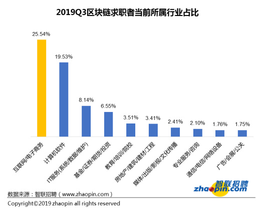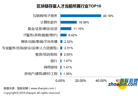 存量人才主要分布于互联网/电子商务行业,与区块链底层技术逻辑相呼应