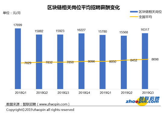 区块链领域平均招聘薪酬达到16317元,是全国平均的近两倍