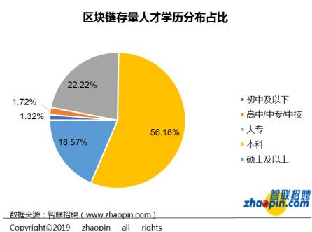 区块链存量人才学历普遍偏高,大部分为本科及以上学历