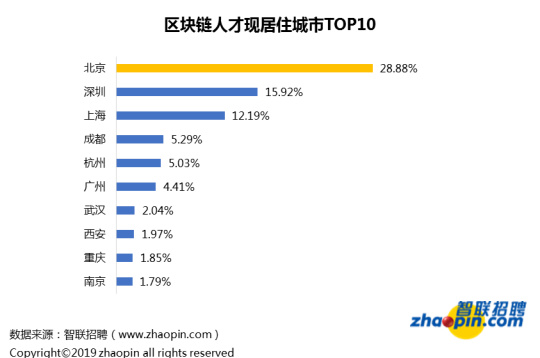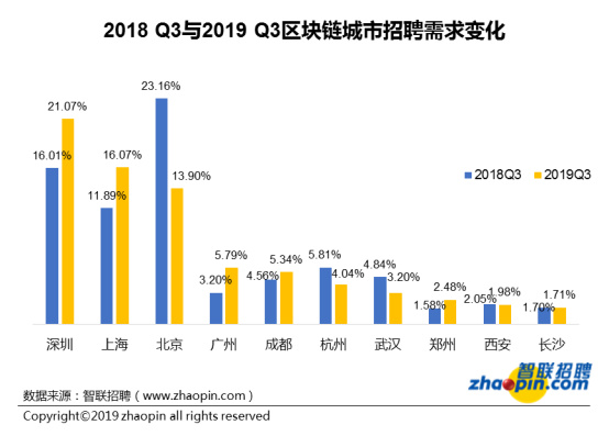 深圳领跑需求,北京人才扎堆, 区块链招聘需求集中在一线、新一线城市