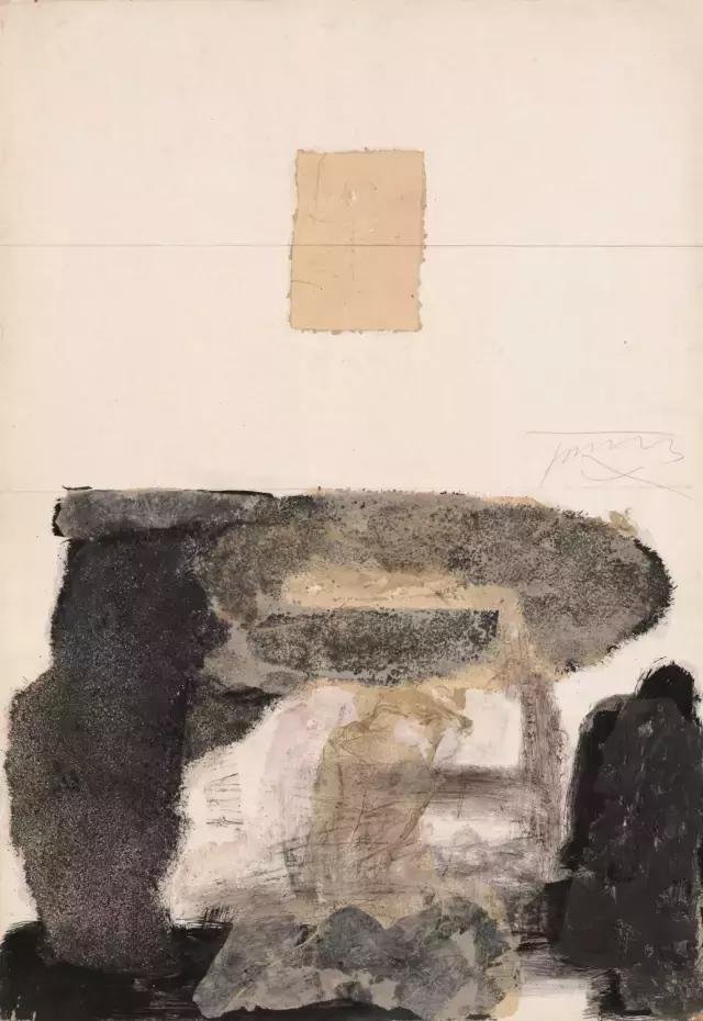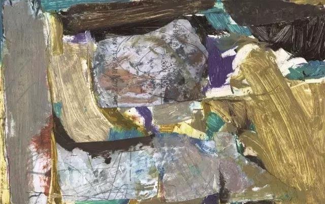 《山水》 78.5×55cm 卡纸上色粉笔、油彩及宣纸拼贴等 1990年