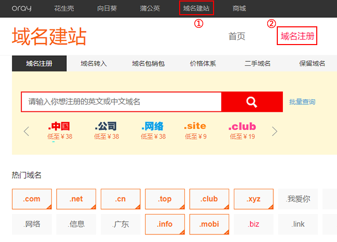Oray域名建站是中国排名前十的域名注册服务商!快速稳定的DNS解析、自由转入/转出/过户,PC+手机+微信网站+小程序+APP,海量精美模板可视化编辑、无需编程知识、快速上线。此外多个品牌的全球知名数字证书颁发机构(CA)供您选择申请简单、快速颁发。