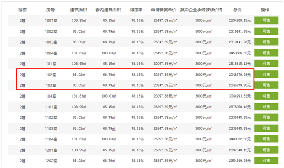 开房源中89和100㎡的小户型占到一半,而且该批房源中总价最低的2#号楼的102与103室,88㎡总价204.6万!