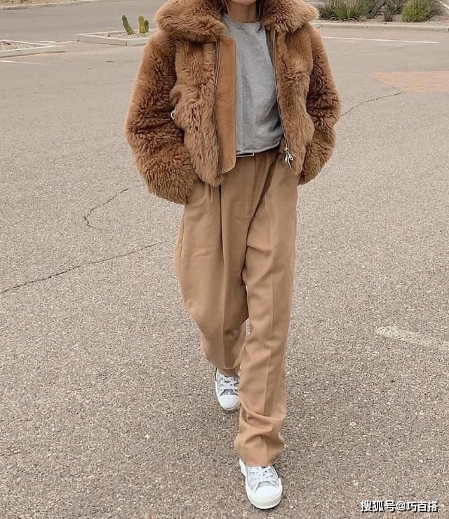 身高不够的女生,却喜欢这种时尚率性风的穿衣风格,可以借鉴这身搭配。简单又不失高级感的同色系穿法,利用同色系之间的视觉延伸性,轻松就能穿出高挑的身材。尤其是这身搭配很有心机,今年流行的泰迪熊短外套与阔腿裤碰撞,形成了经典的高腰配短打,不仅显腿长还chic感十足!