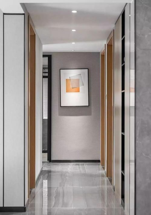 过道通过虚实的展示柜与到顶的房门,让干净清爽,同时又丰富多彩。