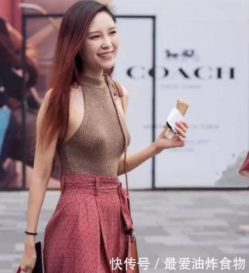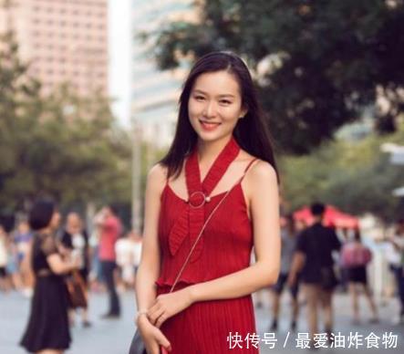 美女,一件深色的紧身背心搭配红色的裙子,尽显女神气息