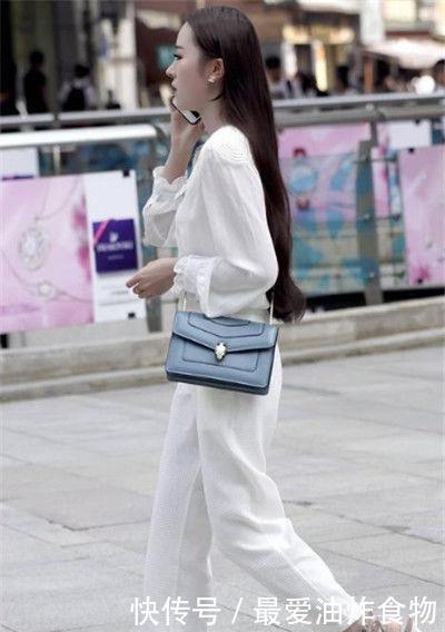 气质美女白色套装配高跟鞋,长发披肩,知性优雅女人味十足