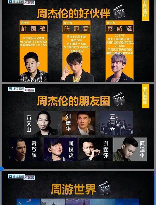 早在两年前,周杰伦就打算亲手制作一档综艺,取名为《周游记》。当然,他所邀请到的嘉宾不仅仅是好友,还是娱乐圈内重量级别的偶像,不止有林俊杰、萧敬腾来了,让人惊喜的是,他还邀请到天王刘德华,同时还有他的御用填词人方文山,可谓是一波神仙阵容的嘉宾。