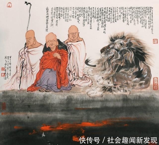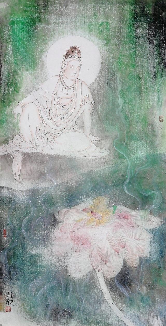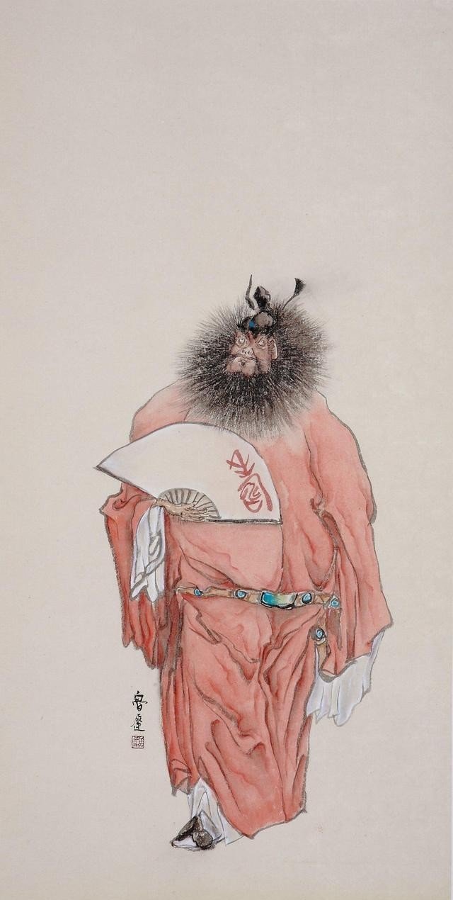 鲁迟笔下的人物具有独到的传神形象,凸显了独特的线条之美,尤其是佛像的衣衫线条轻松、自然、生动,勾勒出肃穆端庄的佛祖,慈悲沉静的观音。他笔下的钟馗更是震撼人心,圆瞪的大眼、倒竖的浓眉、喷发的胡须,出鞘的宝剑,要斩尽天下魑魅魍魉,杀尽人间牛鬼蛇神,凸显傲岸刚直、嫉恶如仇,不可一世的威严。鲁迟笔下的红衣罗汉长眉大耳,神态各异:或籍教悟宗,凸显专心致志的神色;或禅茶一味,显现悠然自得的神态;或闭目养神,凸显内心宏大,胸有成竹的神情;或面呈笑容,凸显悠然淡定,超然世外,常乐于心的神韵等等。人们拜读之后,增长见识,启迪心灵,慰藉灵魂。