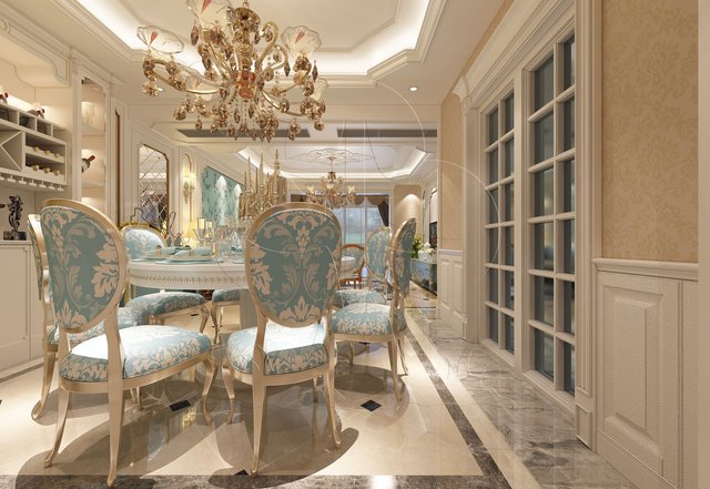 餐厅是一家人吃饭的地方,在搭配时可以选用暖色的暖色调,会让人有温馨感,比如红,橙,黄等,但是鲜艳的颜色只能作为点缀,切勿大面积使用,可以搭配使用,例如红+米黄,橙+象牙白。