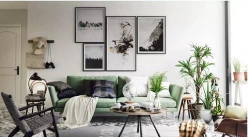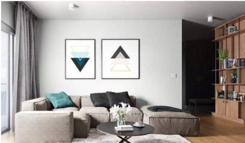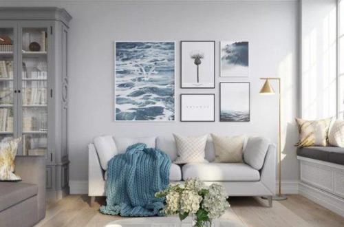 以客厅为例,可以依据黄金比例进行计算,用沙发背景墙的宽度和高度各自乘以0.618,就能得出装饰画的标准尺寸。