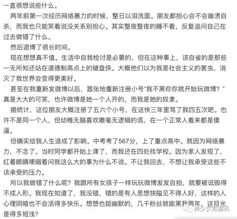 后来退博了很长时间。直到她重新更新微博,还有人去她微博下说不骂她都敢发微博了。