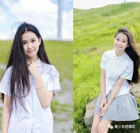 挖酱找到了她几张中学的照片,