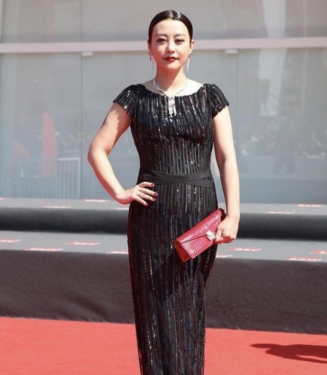 4.在黑色里面融合低调的亮闪,能够让沉闷死板的黑色立刻呈现出满满的光泽。郝蕾选择的这款连衣裙有竖条纹的设计,融合了亮片作为点缀,更有端庄华丽的美感。不会太过浮夸的长款连衣裙能够衬托的整个人高挑又挺拔,还能修饰身材。腰部有交叉的线条作为点缀,可以代替腰带,让连衣裙更有设计感。