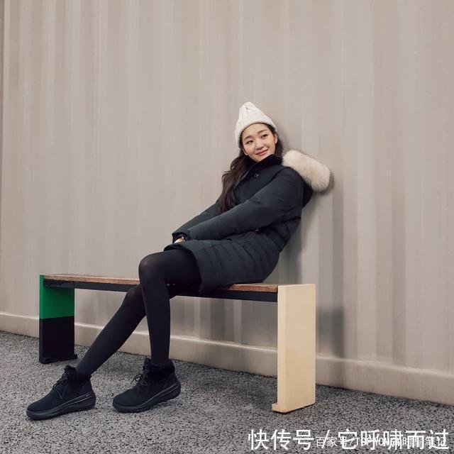 最后是这种长款的棉服,很多人应该挺头痛的,怕穿得臃肿,那下半身穿打底裤或者紧身裤就OK了,像金高银这样你会觉得她臃肿吗?