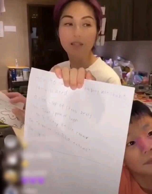 杨千嬅展示出自己为做菜做的食谱,表示为了陪儿子做功课自己也提前做了很多“功课”,Torres看到后,也拿出自己做的功课在镜头前展示,杨千嬅则无情评价“完全看不出你写什么,你努力点”,这果然是亲妈,好歹给点面子嘛,哈哈。