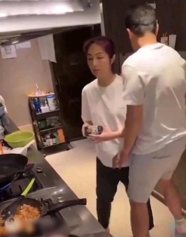 做菜的期间,杨千嬅老公丁子高偶然出现在镜头里,不过路过厨房的丁生并没有露面,只是拿了饮料后就低着头慌慌张张出去了,还不小心跟杨千嬅撞上,真的超可爱。