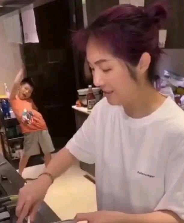 8岁的儿子Torres倒是一点也不怕,多次进入厨房打招呼,还摆出各种搞怪姿势抢镜,性格开朗,活泼可爱,十足抢镜王。不过杨千嬅担心儿子会被油溅到,就多次催促他出去。儿子的打扮也很接地气,看起来跟普通的小朋友没什么区别。