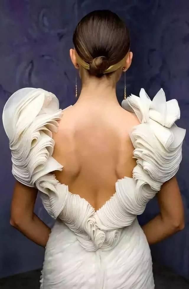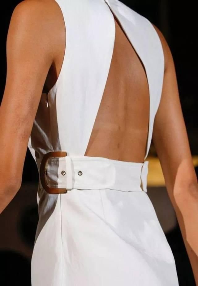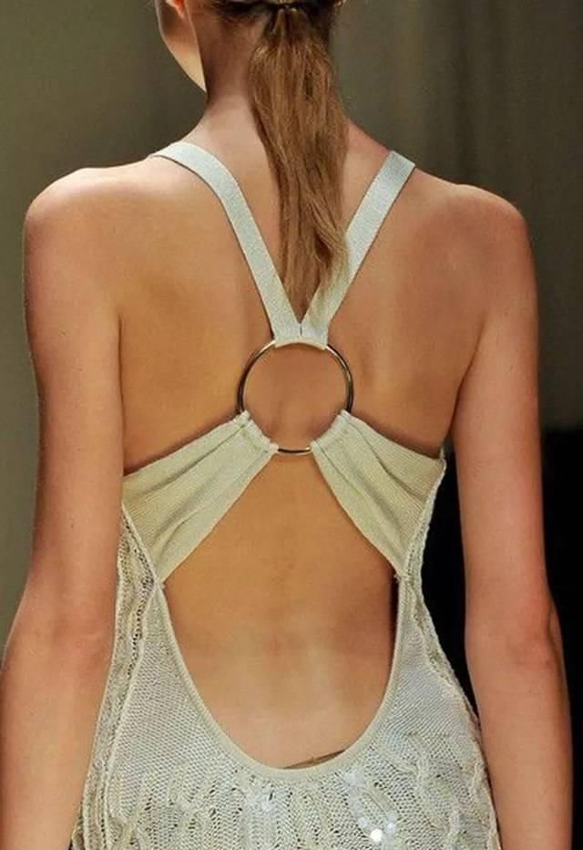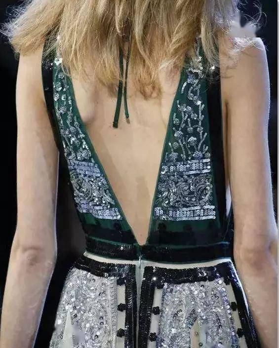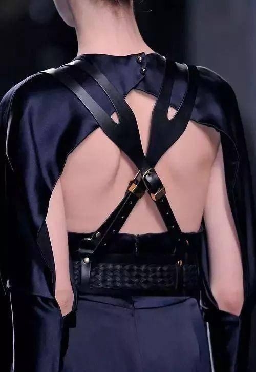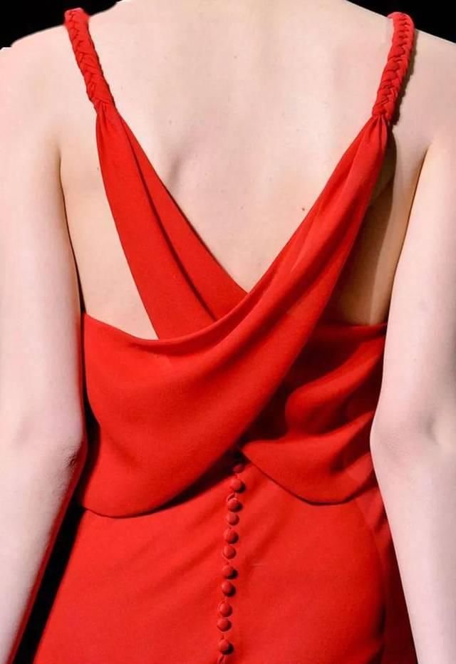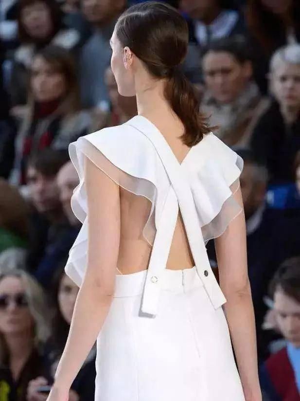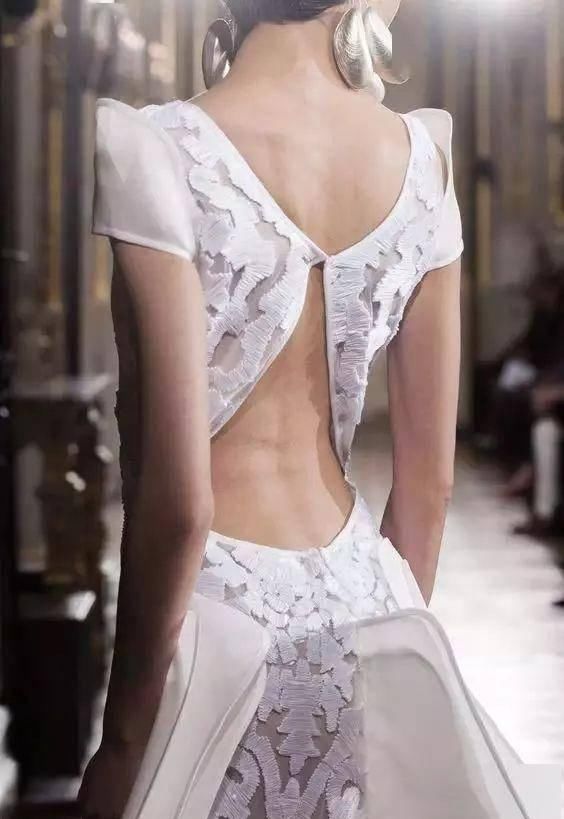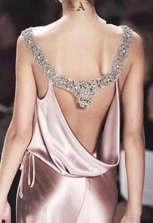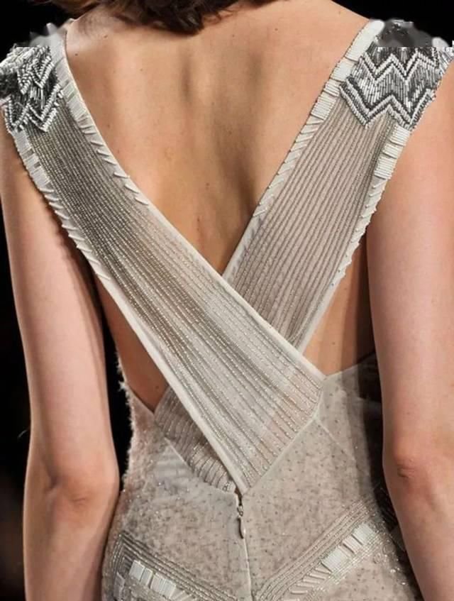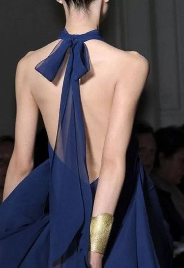 精致的背部造型设计如编织结构、垂坠褶皱、交叉线条、优美的弧度、现代感的金属和华丽的钉珠等,添加得当则优雅而不显得做作。