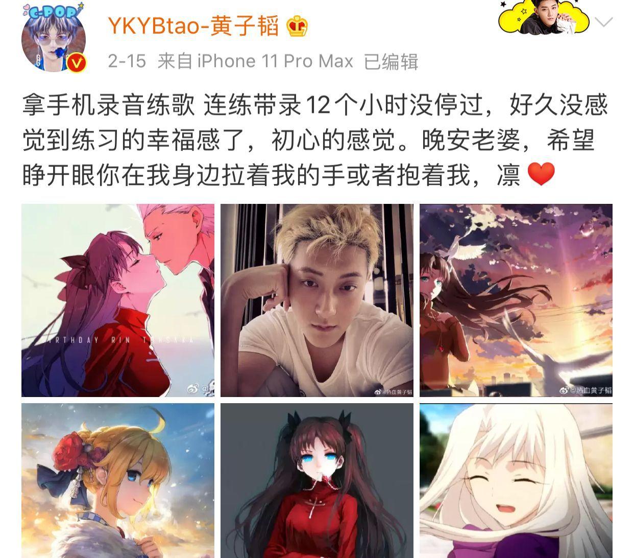 黄子韬最近可以说是经常出现在大众的视线中了,经常在热搜上可以看到他的身影,他之前也一直保持着很好的热度,加上粉丝基础也是一直在线。最近在影视界也是收获和大量好评。之前他也在微博官宣自己的二次元老婆远坂凛,不过作为老二次元的韬哥也让大家都不意外,这次直接官宣了实在是让她的很多粉丝感受到了严重的代沟。