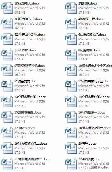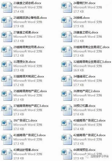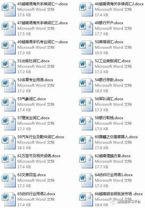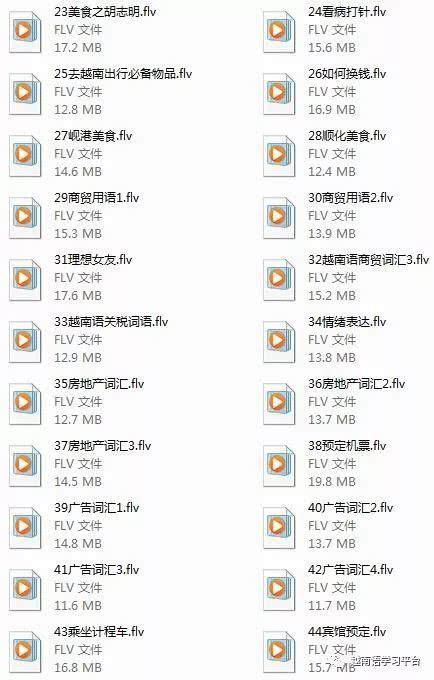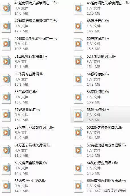 适合自学越南语,视频内容涉及到日常生活各行各业词汇用语,每个视频都配有越南语中文字幕和一个word文档方便学习与复习。