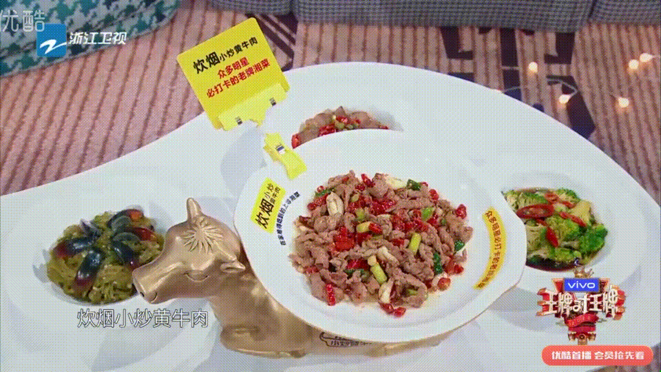 当然,如此顶流综艺,也要有与之相匹配的美食,所以,明星经常打卡的炊烟小炒黄牛肉,就走上了《王牌对王牌》的舞台。